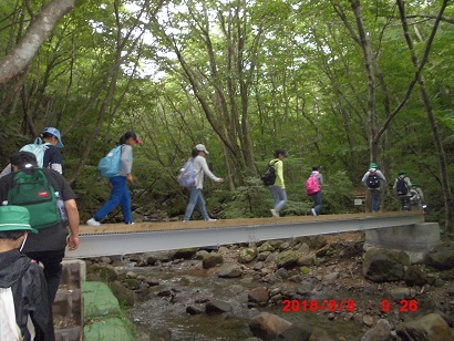 森のようすを観察したり、木々の説明を聞いたりしながら、遠藤ヶ滝までの道のりを歩きました。