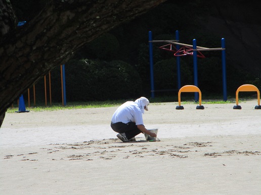 こうして手入れをしてくださる方がいるから、きれいな校庭で遊べるのですね。ありがとうございます。