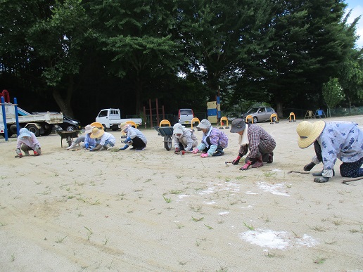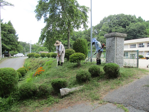 7月27日、吉野辺・飯豊地区の老人会のみなさまが、校地の除草をしてくださいました。