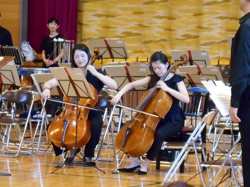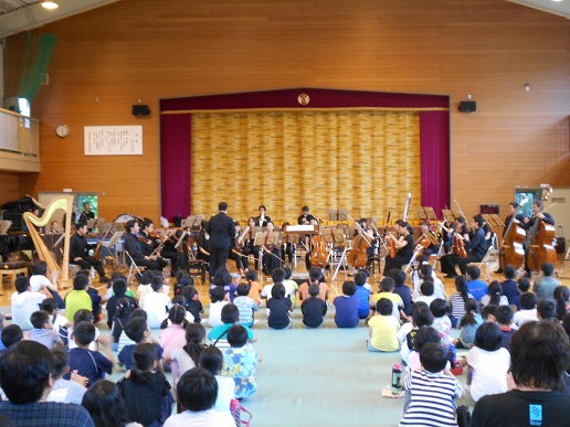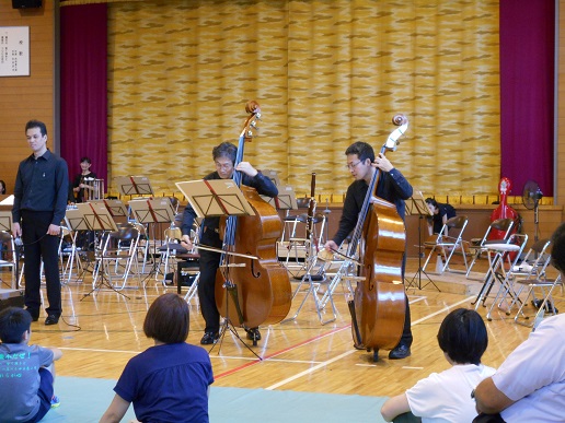 9月7日(金)、浮金小学校体育館で行われた、京都フィルハーモニー室内合奏団によるクラッシックコンサートを、全校生で鑑賞してきました。