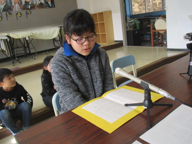 5年生の代表児童から6年生へ感謝のメッセージがありました。
