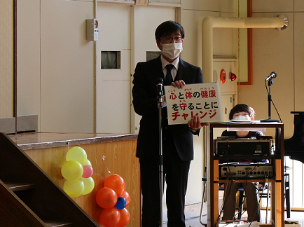 休校中に「心と体の健康を守ることにチャレンジ」してほしいという話がありました。