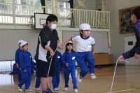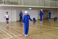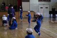 団体種目は、ブロックごとの長なわ連続8の字跳び。3分間で何回(何人)跳べるかに挑戦する種目です。1年生は、初めて挑戦する種目だったため、練習を始めた頃は、跳ぶことも難しかったのですが、今日は、少しずつ流れに乗って跳べるまでに成長した様子を見ることができました。3・4年生は、前の人と切れ間無く跳ぶことを目標に練習していた成果を見ることができました。そして、5・6年生は、できるだけたくさん回数を跳ぶことを目標に練習してきました。速いスピードで回るなわにも引っかからずに、リズムよく跳ぶ姿が、下級生にとってヒーローのように感じたことでしょう。