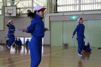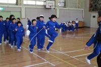 個人種目は、2分間技跳び。各学年ごと、ブロックごとに決められた技跳びを2分間で何回跳べるかに挑戦する種目です。子どもたちは、かけ足跳びやあや跳び、二重跳びで、自分の目標回数達成をめざしてがんばっていました。