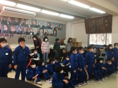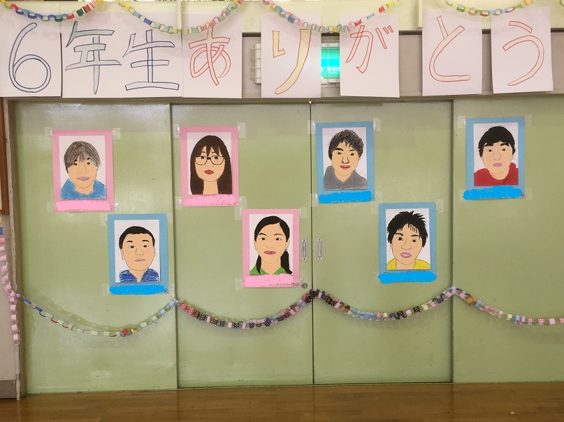 ちなみにこの似顔絵は、顔写真をもとに、2年生が色を塗り、1年生が名前を書いてくれたものです。周りのみんなからも「とても似ている!」ととても好評でした。卒業式まで飾っておく予定ですのでぜひご覧ください。