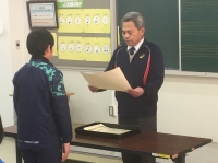 音読発表会の前には、インフルエンザの影響で実施できなかった書き初め関係の表彰も行いました。