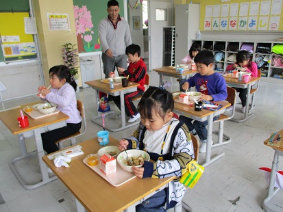 そして、給食もスタートしました。今日の献立はマーボー丼です。