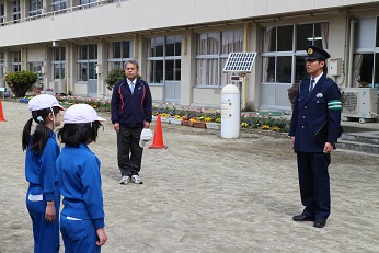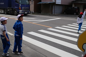 下学年は坂口さんのお話を聞いたあと、学校下の横断歩道の渡り方を確認しました。高学年は「家庭の交通安全推進委員」を委嘱され、交通ルールを守って生活することを誓いました。これからも飯豊小の全児童が安全に登下校し、元気に生活できることを願ってやみません。保護者のみなさまも交通安全に気をつけて運転願います。