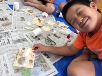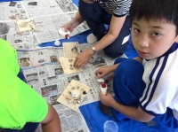 本日、午後の活動「貝の壁飾り作り」の様子です。