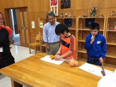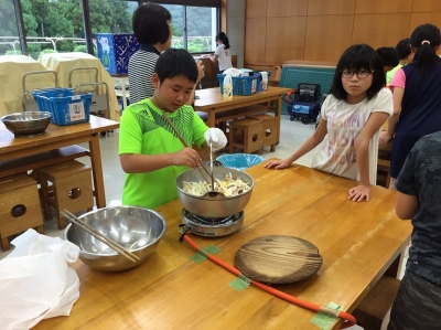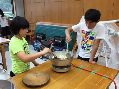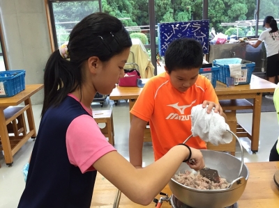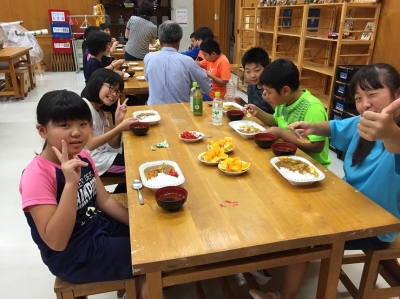 野外炊飯の代わりに、館内の調理室をお借りしてのカレー作りに励んでいます。