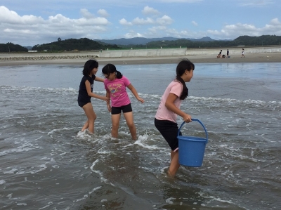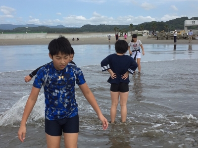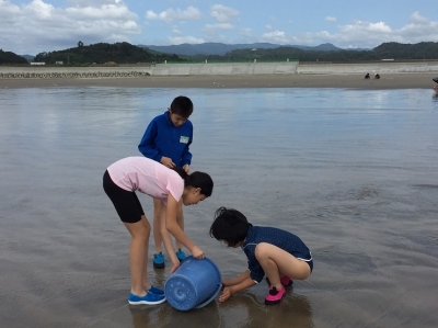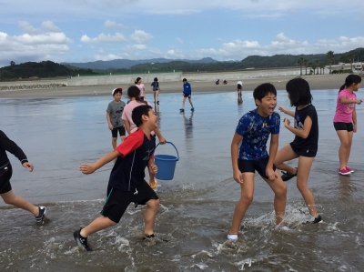 せっかくいわき市に行ったのに、海に行けないのでは……?と心配していましたが、ついに海での活動が実現しました。子どもたちも待ちに待っていたようで、うれしい声が聞こえてきそうな表情ばかりです。 ただ、水はちょっと冷たいようです。