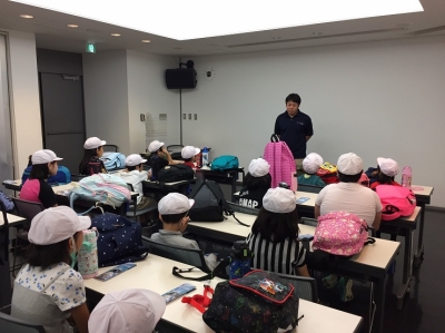 はやくお魚さんを見に行きたい!そんな気持ちを抑えて、ちょっとだけお話を聞く時間です。みんな真剣に聞いていますね。