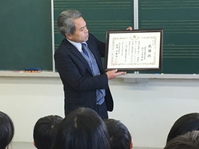 また、年末に田村警察署長からいただいた、本校緑の少年団に対する感謝状の紹介がありました。5・6年生を中心に継続して行ってきた「花いっぱい運動」に対するものです。子どもたちにとっても大きな励みとなったようです。