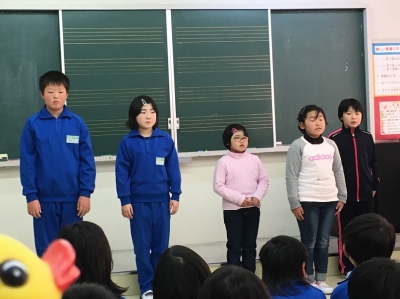 本日の集会では、2・4・6年生の代表が3学期の抱負を発表しました。
