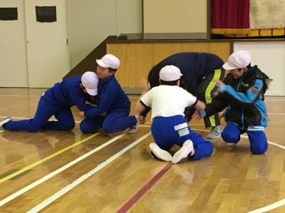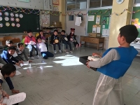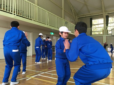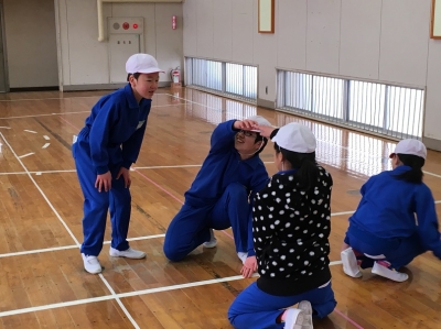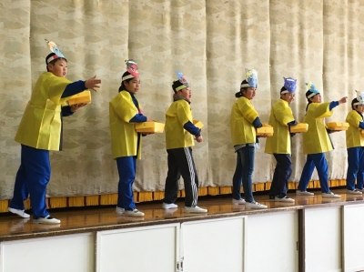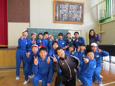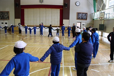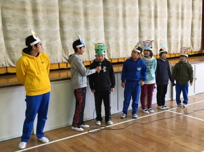 なかま作りゲーム、ジェスチャーゲームで打ち解けたあった後、ドレミ体操を一緒にやったり、きらきらぼしの演奏で一緒に歌ったり、飯豊小学校の校歌を聴いてもらったりしました。