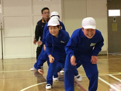 まずは、「あったかいんだから」のダンス。各ブロックで踊ったときは、小さな円でしたが、全校生ともなると圧巻!体育館いっぱいに円が広がりました。