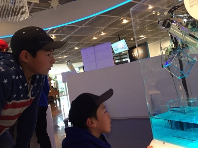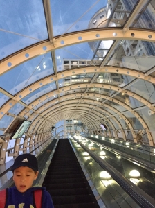 東京スカイツリーに到着。表情に明るさもでてきました。エレベーターに乗って上へ向かいます。
