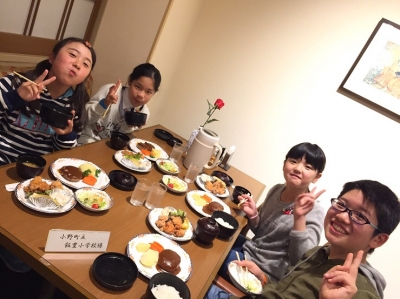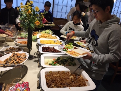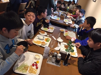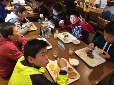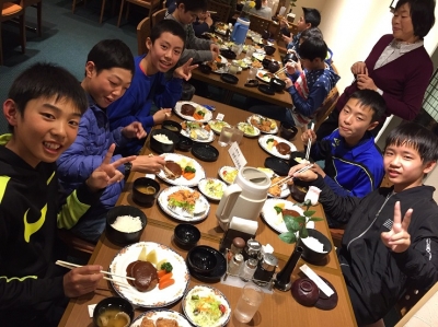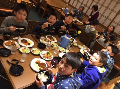 こちらは、男の子グループ。夕食は、部屋ごとに分かれて食べているようです。
