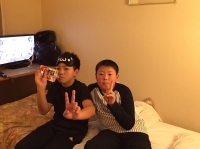 ホテルで時間を過ごし、寝るだけだと思っていた子どもたちにサプライズ発表!