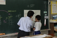 先生方も、子どもたちと一緒に挑戦しました。子どもたちに負けないくらい真剣に、中には子どもたちよりも本気になっている先生もいるほどでした。
