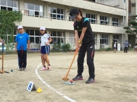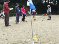 こちらは上学年グループの様子です。上学年グループは全部で8ホール実施しました。全てのホールが下学年グループよりも長いので少し大変そうでしたが、時間内に全てを回ることができました。ホールインワン達成者は2人でした。