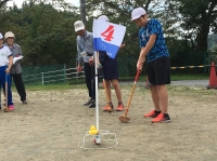 2016年9月27日 13時50分 心配していた雨も上がり、久しぶりに太陽が顔を見せる中、第2回ふれあいフェスタを実施しました。今回も、第1回同様、飯豊&吉野辺地区のグランドゴルフ愛好家のおじいちゃん、おばあちゃん方とグラウンドゴルフを通して触れ合いました。