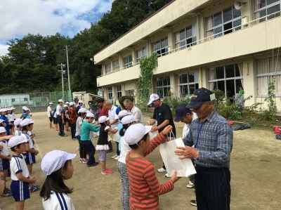 最後に、本日お越しいただいた15名のおじいちゃん、おばあちゃん方に、子どもたちから感謝の気持ちとプレゼントをお渡しし、ふれあいフェスタを終了しました。