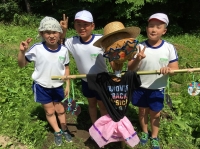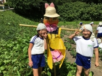 大切な大豆が、鳥に食べられないように、自分たちで作ったかかしを設置しました。