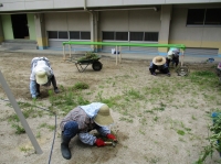 老人クラブの方々のおかげで、校地内が見違えるほどすっきりと、きれいになりました。