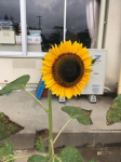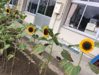小野高校生からいただき、1年生が花壇に植えたひまわりがきれいに咲きました。