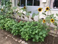 2016年8月3日 15時22分 小野高校生からいただき、1年生が花壇に植えたひまわりがきれいに咲きました。