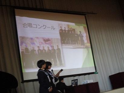 校長先生や生徒会のみなさんからは、中学校の教育目標や、学習と生活の様子について説明がありました。
