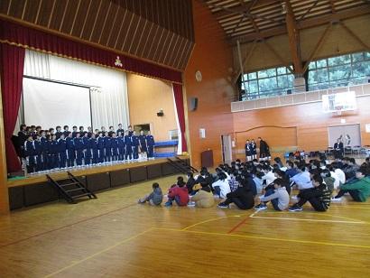 中学生の皆さんが歌ってくれた校歌は、声が体育館中によく響き、とても大人びていました。