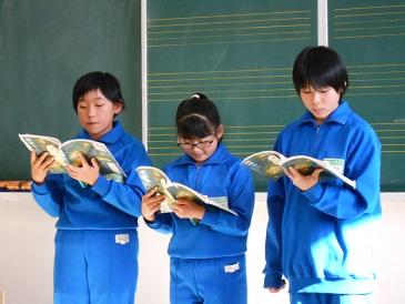 発表の後には、他学年から「声が聞きやすくて上手だった」「すらすら大きな声ではっきり読んでいた」「話をするように工夫して読んでいた」「ひさびさに聞けて、残雪ははっぱりかっこいいなと思った」「去年勉強したが忘れていたので、もう一度読んでみたい」と感想の発表がありました。