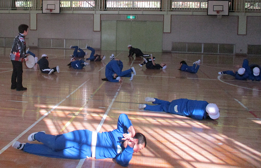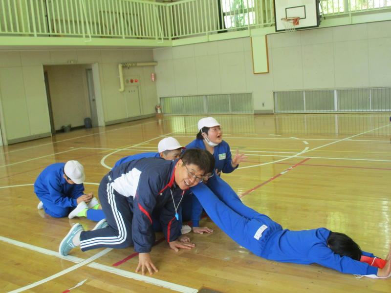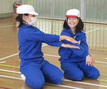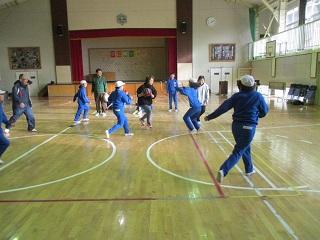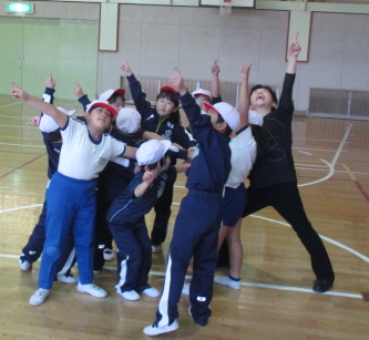 今年は、体育の体験授業が行われ、集団行動の練習やダンス、レクリエーション活動を6年生全員で行いました。
