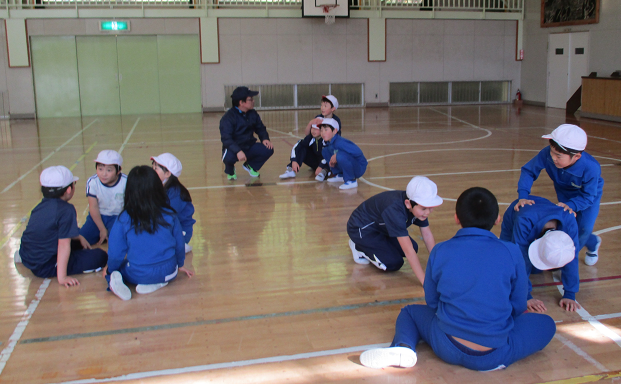 放課後子ども教室でもご指導いただいている矢内みち先生に特別講師として来校していただき、全校児童が体育科