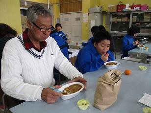 5・6年生が今まで指導してくださった感謝を伝え、おいしくカレーライスを食べていると・・・かわいい訪問者たちがやってきました。