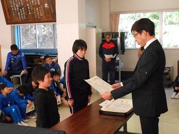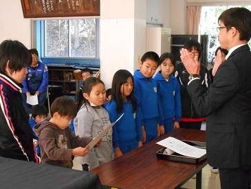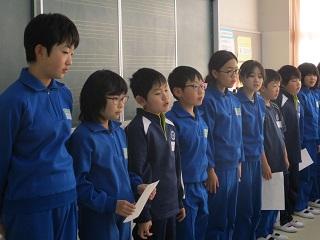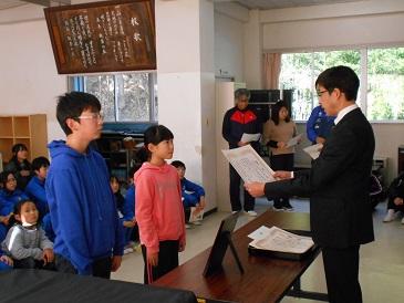 はじめに、緑化コンクールや県児童作文コンクール、地区造形展の表彰です。
