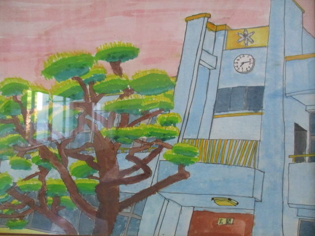 今年度の美術展に出品した作品を廊下や玄関に掲示しましたので、来校した際に
