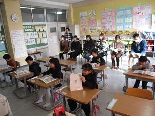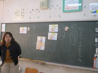 発表後には「三年とうげは去年の文化祭で劇にして発表したので、なつかしかった。」「はっきり読めていてよかった。」「のはらうたの作者の名前がおもしろいと思った。」「音読を聞いて(興味を持ったので)、図書室にある、のはらうたの本を借りて読んでみたくなった。」と、感想の発表がありました。