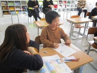 1年生は道徳の授業です。思いやりについて、みんなで考え、話し合いました。