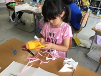 おなじみのちょうちんを作ったり、初めての飾りに挑戦したり、5月に図工で学習した 「チョキチョキかざり」 を活かして作ったりすることができました。