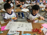 さーらさら♪ ということで、そろそろ七夕です。1年生は、6日に行われる七夕集会に向けて、七夕飾りを作りました。