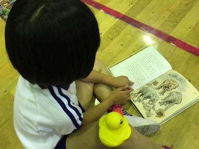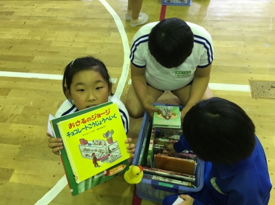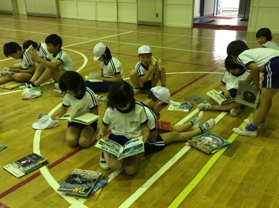 借りてすぐに、体育館で本を読み始めた子ども達。読書が大好きなんですね。