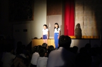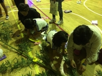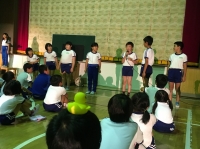 縦割り班ごとに、願い事を書いた短冊を竹に飾り付け、それぞれの願い事を発表し合いました。各学年の代表児童による発表では、「剣道で全国大会にいく」「お医者さんになりたい」などの願いがありました。
