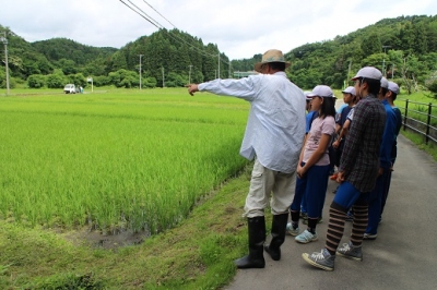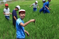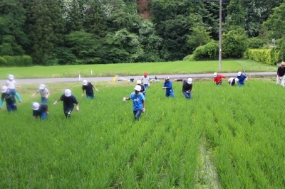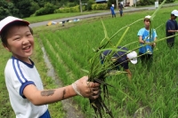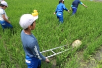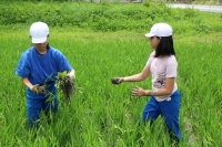田車を押しながら歩いたり、稲の間に生えている雑草を抜き取ったりと、