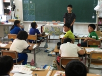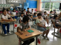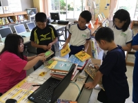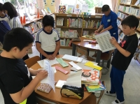 子どもたちは、図書登録の手順を覚えながら、黙々と作業を続けていました。おかげさまで、14日からの夏休みの本貸し出しに間に合いそうです。