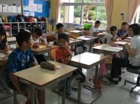 地区ごとに教室に分かれ、上級生を中心に、夏休みの過ごし方や地区行事、危険箇所の確認を行いました。