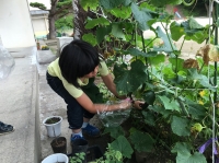 2016年7月15日 14時43分 4年生は、3連休を前に、授業で育ててきたキュウリの収穫を行いました。