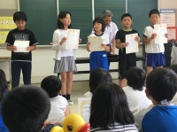 はじめに、15日に行われた「第1回ふれあいフェスタ・グラウンドゴルフ大会」上位5人の表彰と、11日に行われた「小学生陸上大会田村地区予選会」入賞者の表彰を行いました。